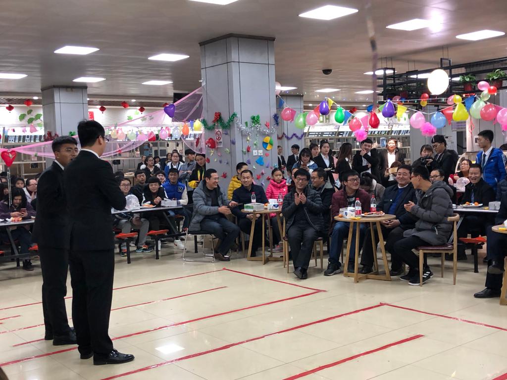 晚8点,迎新年游艺会在同学们的表演和欢呼中拉开帷幕,陕西省师德先进个人索红军老师高歌一曲《一壶老酒》传递祝福,游艺会设置的“不倒森林”“心心相印”“珠行万里”“抢凳子”等游戏环节,把现场变得欢乐温馨,同学们也感受到了老师们在教学之外童心未泯的一面。