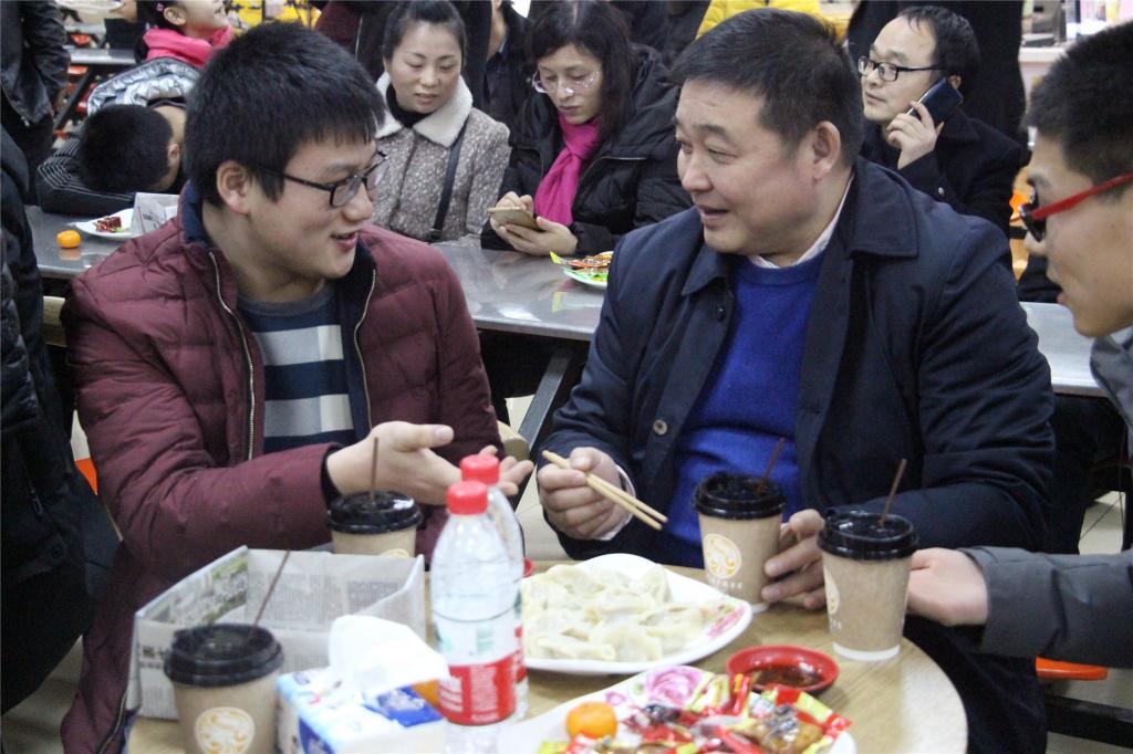 下午6点左右,卓宇校长出现在活动现场,“同学们平时在家包过饺子吗?”同学们顺着话音抬头,又惊又喜。看着盘子里各式各样的“创意”饺子,卓校长现场给大家演示了传统饺子的包法。一边包,一边了解同学们学习上生活上有什么困难。他说到,学校非常关心学生的成长,尤其是家庭经济困难学生,学习生活中有什么不适应的地方,有什么困难给老师说,给学院领导说,给他说。