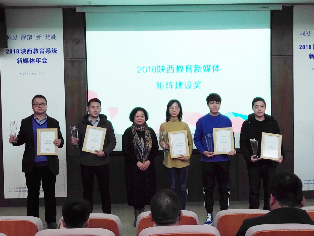 我校荣获2018年度陕西教育新媒体矩阵建设奖,这是我校第二年荣获新媒体运营奖。2018年,我校新媒体综合影响力指数排名全省第11,较去年相比上升6个名次,其中,官方微博影响力指数全年排名全省第7。