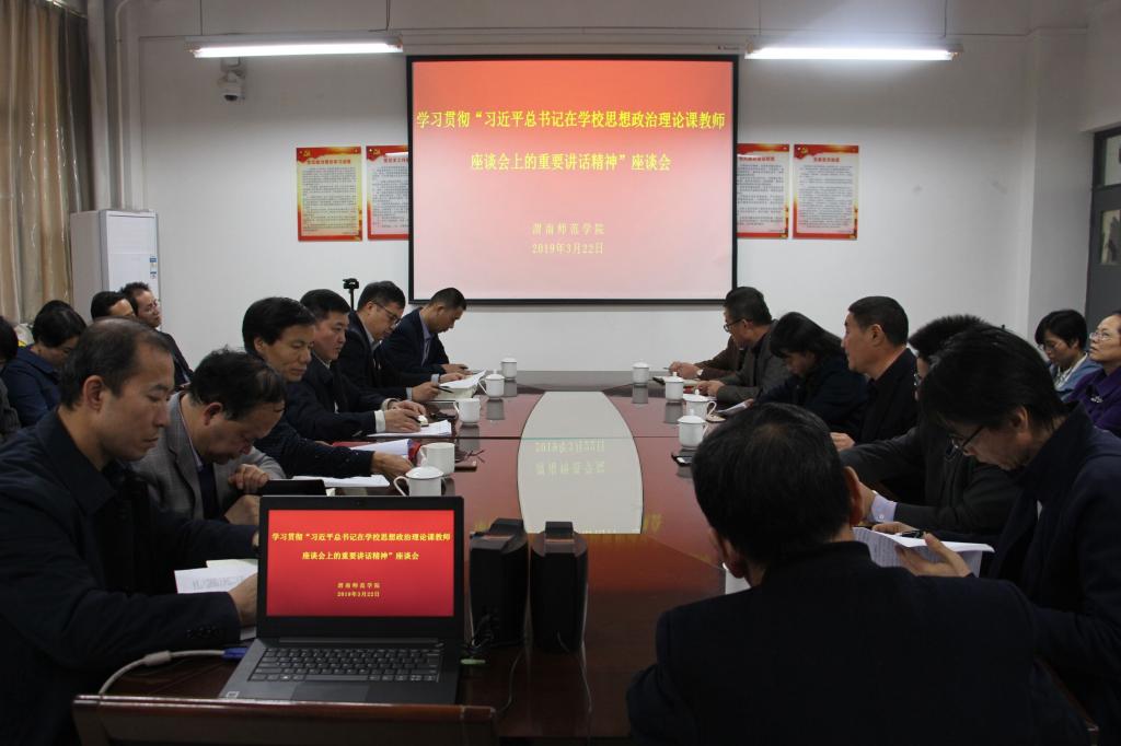 3月22日下午,学校召开学习“习近平总书记在学校思想政治理论课教师座谈会上的重要讲话精神”座谈会。会议由党委书记卓宇主持召开。学校思想政治理论课教师、学生辅导员代表,党政办公室、组织部、宣传部、学工部、人事处、教务处、团委负责人等,共40余人参加座谈。
