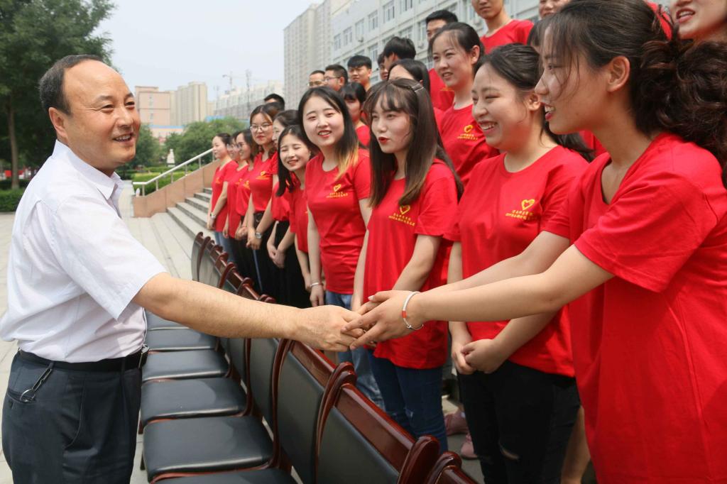 6月25日下午,学校在厚德楼第二会议室举行渭南师范学院2019年西部计划志愿者欢送座谈会,学校党委书记卓宇、校长赵曼欢送赴西藏、新疆和全省各地的39名志愿者并合影留念,党委副书记任健出席座谈会。团委副书记姚明亮主持欢送座谈会。