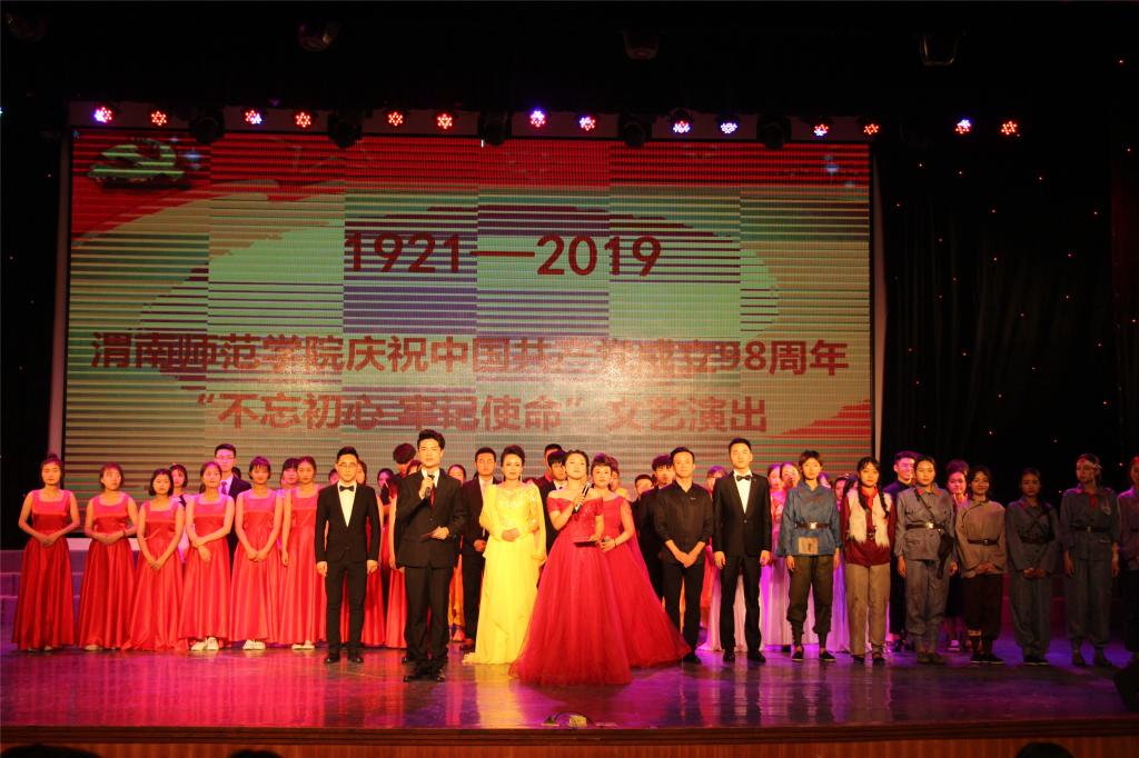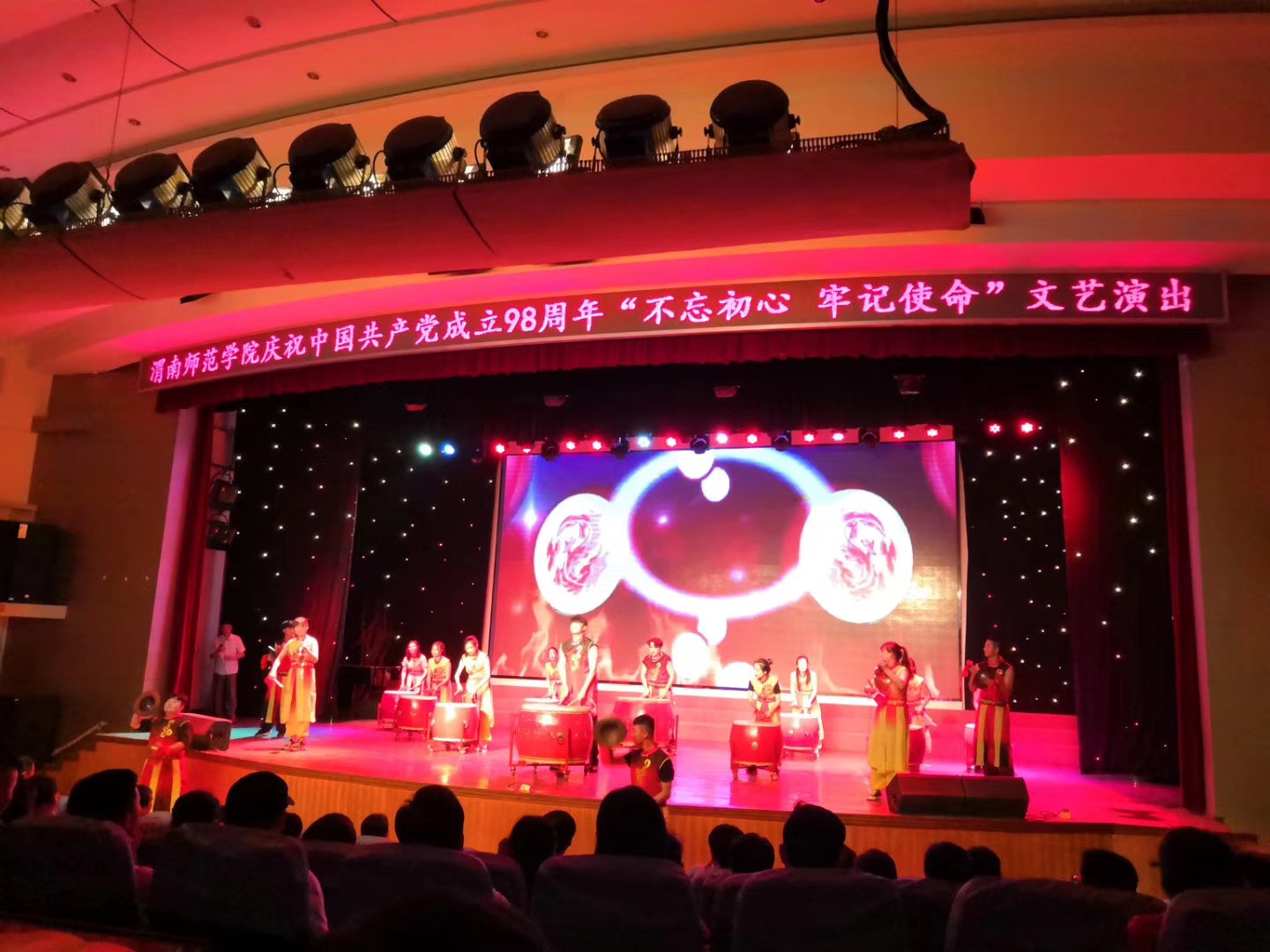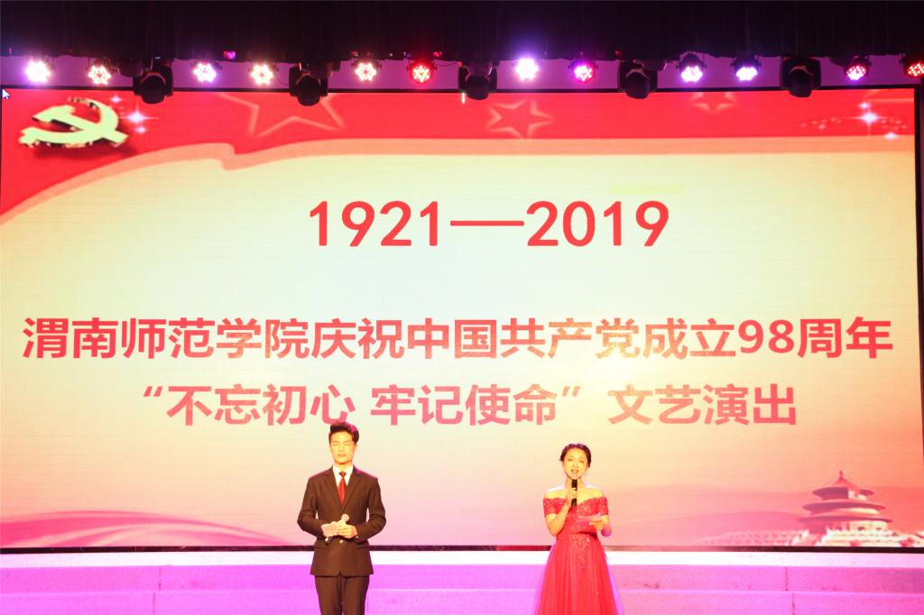7月1日是中国共产党成立98周年,渭南师范学院在陶然楼演艺厅隆重举行庆祝中国共产党成立98周年“不忘初心 牢记使命”文艺演出,共同讴歌中国共产党的光荣历史和丰功伟绩,以昂扬奋进的热情向党的生日献礼。学校领导、副科级以上干部、师生党员代表等400余人观看了演出。