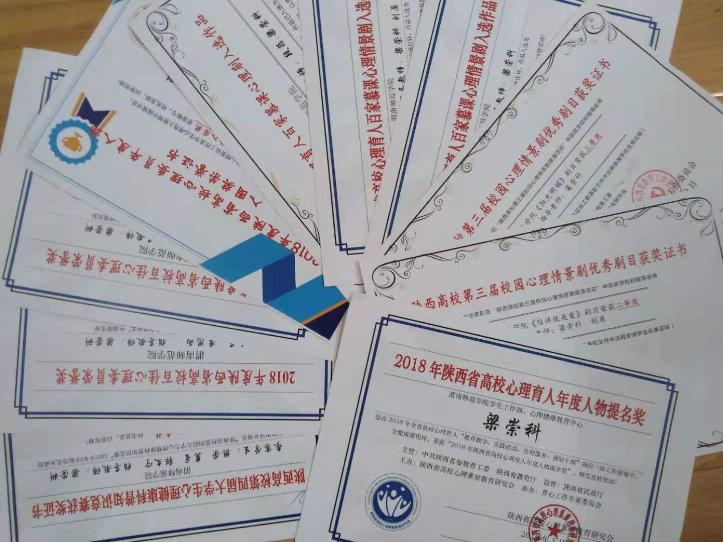 会议全面总结了陕西高校第四届“阳光护航”心理育人宣传季活动,对宣传季活动中的优秀单位和个人进行了表彰奖励,我校在本次会议上获多项表彰奖励。我校大学生心理健康教育指导中心梁崇科教授在2018年全省高校心理育人“教育教学、实践活动、咨询服务、预防干预”四位一体工作领域中,全能成绩优异,荣获“陕西高校心理育人年度人物提名奖”;由我校选送的校园心理剧《陪伴就是爱》、《阳光明媚》获陕西高校第三届校园情景剧优秀剧目二等奖和三等奖,校园心理剧《我的天空》获陕西高校心理育人百慕课心理剧一等奖;我校代表队在陕西高校第四届大学生心理健康科普知识竞赛中获优秀奖;大学生心理健康教育指导中心梁崇科老师的心理教案《我不是孤岛-大学生人际交往》在“陕西高校首届心理健康教育优秀教案”评比中荣获二等奖;教育科学学院严苏风老师的心理微课《抑郁情绪漫谈》在“陕西高校第四届心理微课比赛”中荣获三等奖,教科院学生张睿豪获得2018年度陕西省高校心理委员年度人物入围奖,美术学院学生白玲、经济与管理院学生李思雨获得2018年度陕西省高校百佳心理委员。