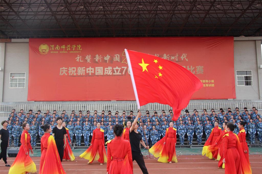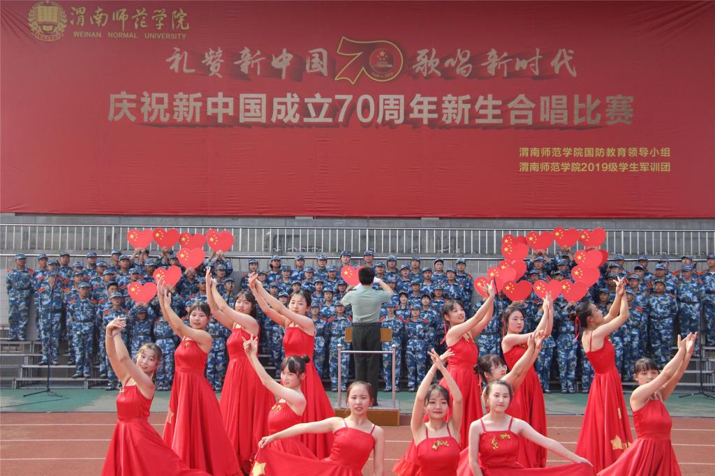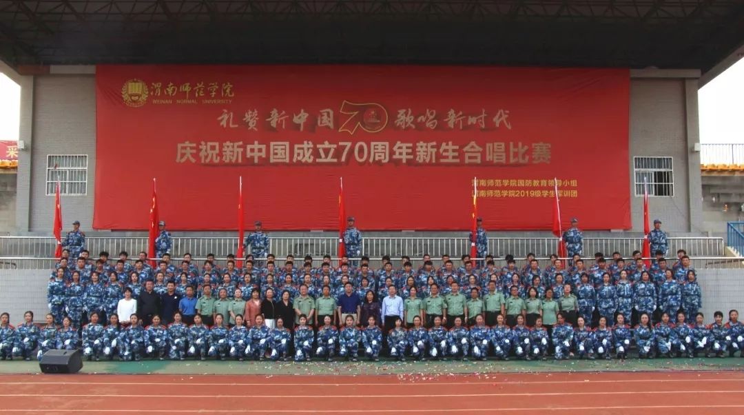 为庆祝新中国成立70周年,激发青年学生奋斗、奉献的爱国情怀,展现渭师学子的蓬勃朝气和青春风采。我校于9月23日在田径场举办“礼赞新中国 歌唱新时代”庆祝新中国成立70周年新生合唱比赛。校党委副书记任健、副校长王菊霞,国防教育领导小组成员单位负责人和各二级学院相关领导出席活动。