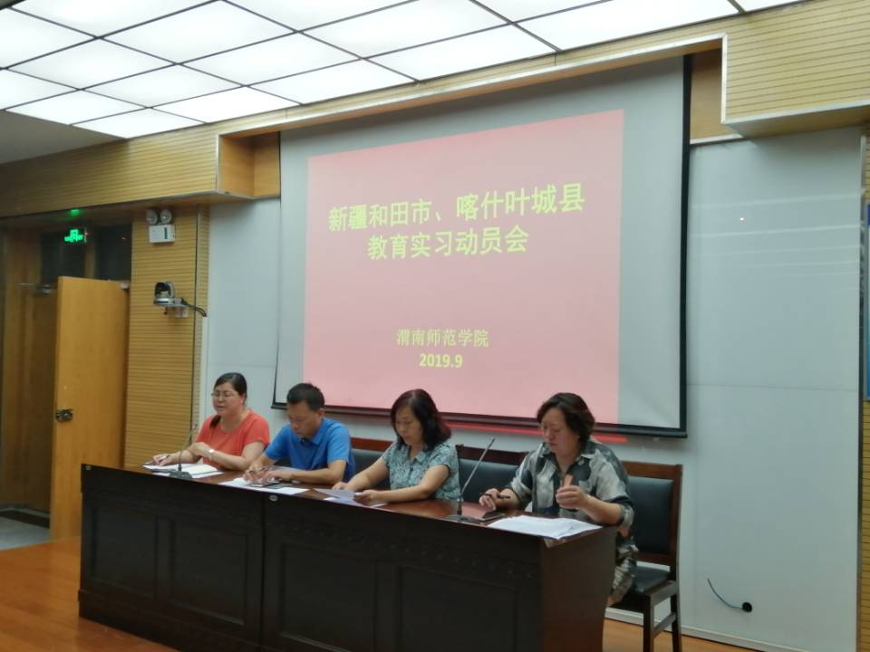 9月份,我校组织2020届235名师范专业实习生赴新疆开展为期三个月的支教实习。9月4日至5日,学校分别召开了赴新疆伊犁州和叶城县、和田市的实习动员会,学校副校长王菊霞,教务处处长孙宏恩,副处长张萍,教育科学学院党总支副书记韩城忠等出席了会议,各相关二级学院主管副院长、指导教师及实习生共270人参加了会议。
