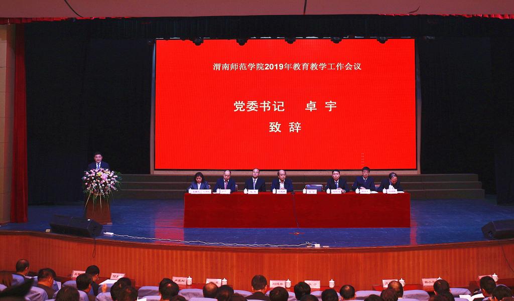 校长赵曼作题为《深化教学改革 强化内涵建设 努力构建高水平人才培养体系》的工作报告,他从巩固教学中心地位、思想政治教育、学科专业建设、人才培养体系、创新创业教育、师资队伍建设、实践平台条件、师范教育特色、中外合作办学、教学质量监控体系等十个方面回顾总结了三年来学校教育教学工作的成绩,分析研判了新时代本科人才培养面临的新形势、新任务,指出了学校人才培养工作存在的主要问题,提出了今后几年学校教育教学工作的基本思路,对构建高水平应用型人才培养体系进行了全面动员和部署,明确提出教育教学改革发展的重点任务和举措:把内涵建设摆在首要位置,夯实人才培养中心地位;坚持立德树人根本任务,实施铸魂育人工程;坚持引培并重,下大力气建设师资队伍;以质量为导向,切实加强专业内涵建设;深化课堂教学改革,推进一流课堂建设;集聚要素资源,推进创新创业教育工作;推进国际国内合作育人,构建协同育人机制;着力做强师范特色,培养卓越师范人才;切实强化管理,狠抓教风学风,健全质量监控体系。