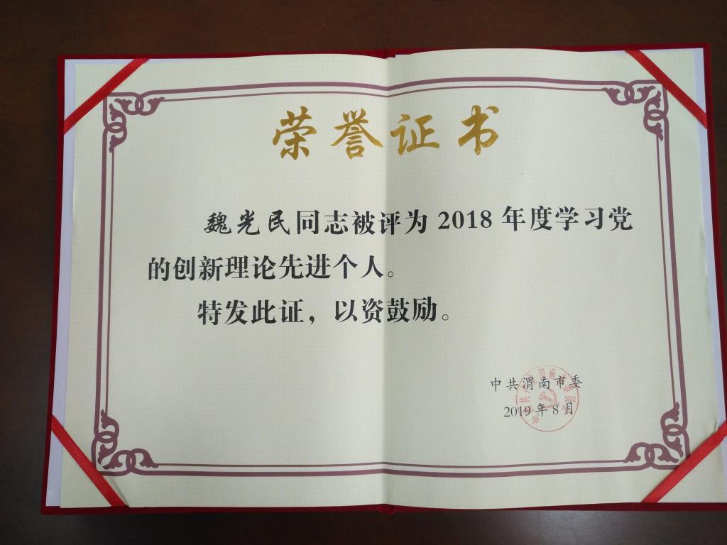 近日,中共渭南市委公布了《关于表彰2018年度学习党的创新理论先进单位和先进个人的决定》,我校经济与管理学院党总支书记魏光民荣获“学习党的创新理论先进个人”称号。