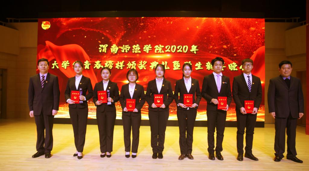 为充分展示我校青年学生朝气蓬勃、积极向上的精神风貌,彰显优秀青年学生在勤奋学习、志愿服务、创新创业等方面的突出事迹,发挥榜样的示范引领作用,激励青年学生成长成才。12月29日,我校在逸夫楼华金音乐厅举办2019年“大学生青春榜样”颁奖典礼暨2020年学生新年晚会。学校党委书记卓宇,校长赵曼,党委副书记任健,副校长王菊霞出席活动并为年度青春榜样颁奖,部分职能处室负责人,各二级学院党总支领导、团总支书记和学生代表500余人参加颁奖典礼和观看新年晚会。