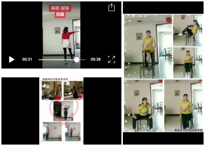 为增强大众家庭健身运动指导的普遍性和实效性,体育学院党总支积极运用微信群、QQ群、抖音、微视等新媒体平台进行家庭健身宣传,同时在学院微信公众号设立“助力家庭健身”专辑,陆续推出家庭健身指导文章和视频,努力激励、引导广大群众积极开展居家健身运动。