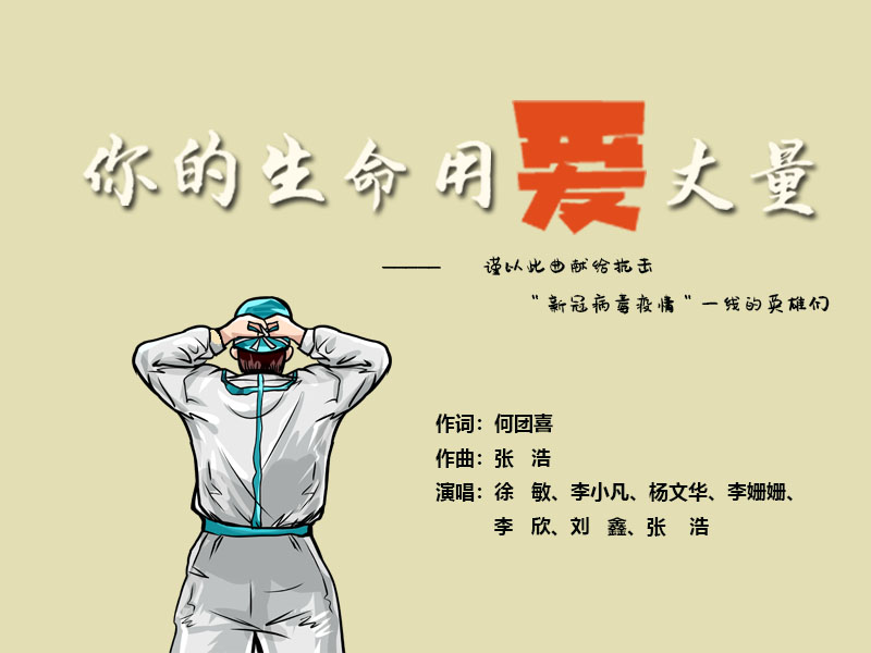 “你是爹娘的孩子,你是孩子的爹娘”,“生命是山,生命是海,你的生命就像哺育我们的黄河长江;生命是天,生命是地,你的生命就是天地间最挺拔的脊梁”,生动感人的歌词、真挚的曲调,是歌曲创作者们对所有敢于同疫情做斗争的英雄们的热情讴歌!每一句歌词,都是颂扬正在发生的感人故事,每一段旋律,都表达了对奋战在抗疫一线工作者的敬意,用温暖感人的旋律和歌词,为这场没有硝烟的战“疫”注入了满满的正能量。