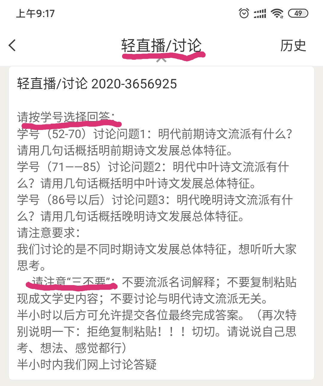 3.线上交流、答疑。(不限时间,随时进行。)