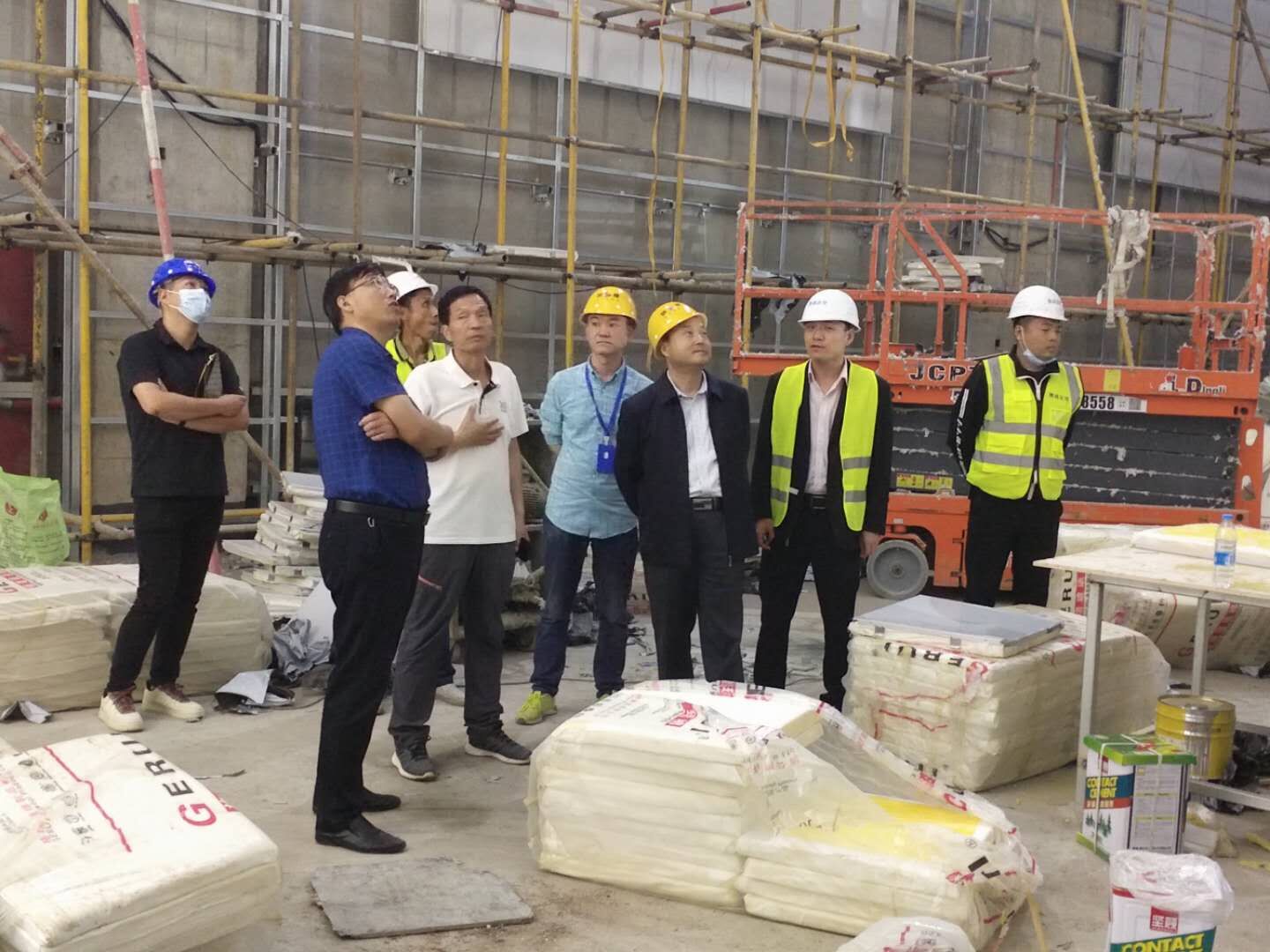 在一楼的热身场馆,正值工人师傅们热火朝天的抓紧施工。赵曼详细询问材料进场的时间节点,仔细了解每一道工序;在主竞赛馆,赵曼耐心听取现场负责人的工程进度汇报;在二楼大厅材料加工现场,赵曼叮嘱工人师傅们要保证质量,抓紧完成材料装配。