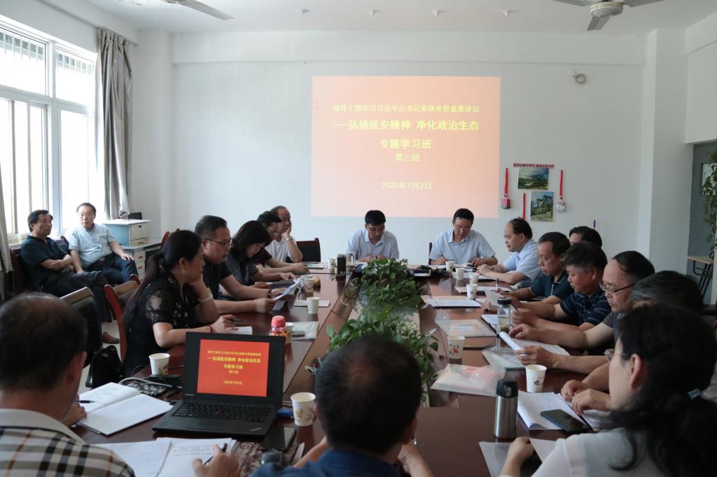 为深入学习贯彻习近平总书记来陕考察重要讲话精神和关于延安精神的重要论述,按照省委教育工委的统一安排,学校于7月2日至3日组织领导干部参加全省高校领导干部学习习近平总书记来陕考察重要讲话——弘扬延安精神、净化政治生态专题研讨班,深入学习领会习近平总书记来陕考察重要讲话精神,用延安精神滋养初心、淬炼灵魂、净化政治生态。