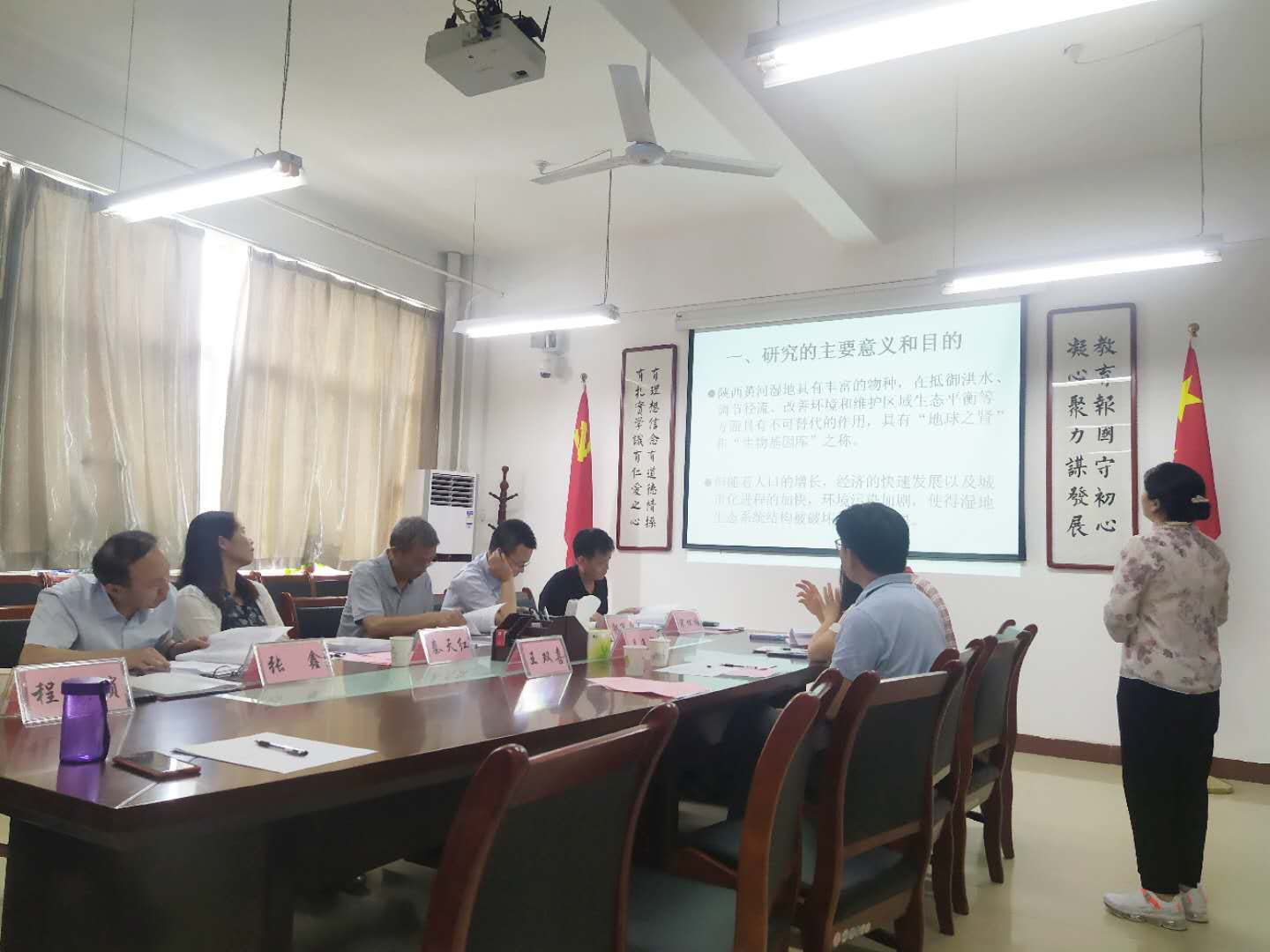 会上,王双喜代表学校致欢迎词并对我校陕西省河流湿地生态与环境重点实验室做了介绍,秦天红对验收程序、项目汇报和质询时间等做了说明。陕西师范大学王孝安教授、西北农林科技大学张鑫教授和宋松柏教授、陕西科技大学郭军康教授、陕西黄河湿地省级自然保护区管理处程铁锁高级工程师5人组成评审验收委员会,王孝安教授为主任。项目主持人李吉锋、袁云香、胡庆玲和王晓艳通过PPT演示,从项目研究背景和立项依据、研究材料与方法、研究结果和结论等方面进行汇报,并就评审专家的提问进行答辩。在认真审阅材料、听完汇报答辩后,专家组对各项目任务完成情况及研究成果给予充分肯定,并对各项目的拓展性研究提出了建议。经评审,我校结项项目建设目标明确,进度安排合理,经费使用规范,取得了预期成果,所有项目均通过结项验收。