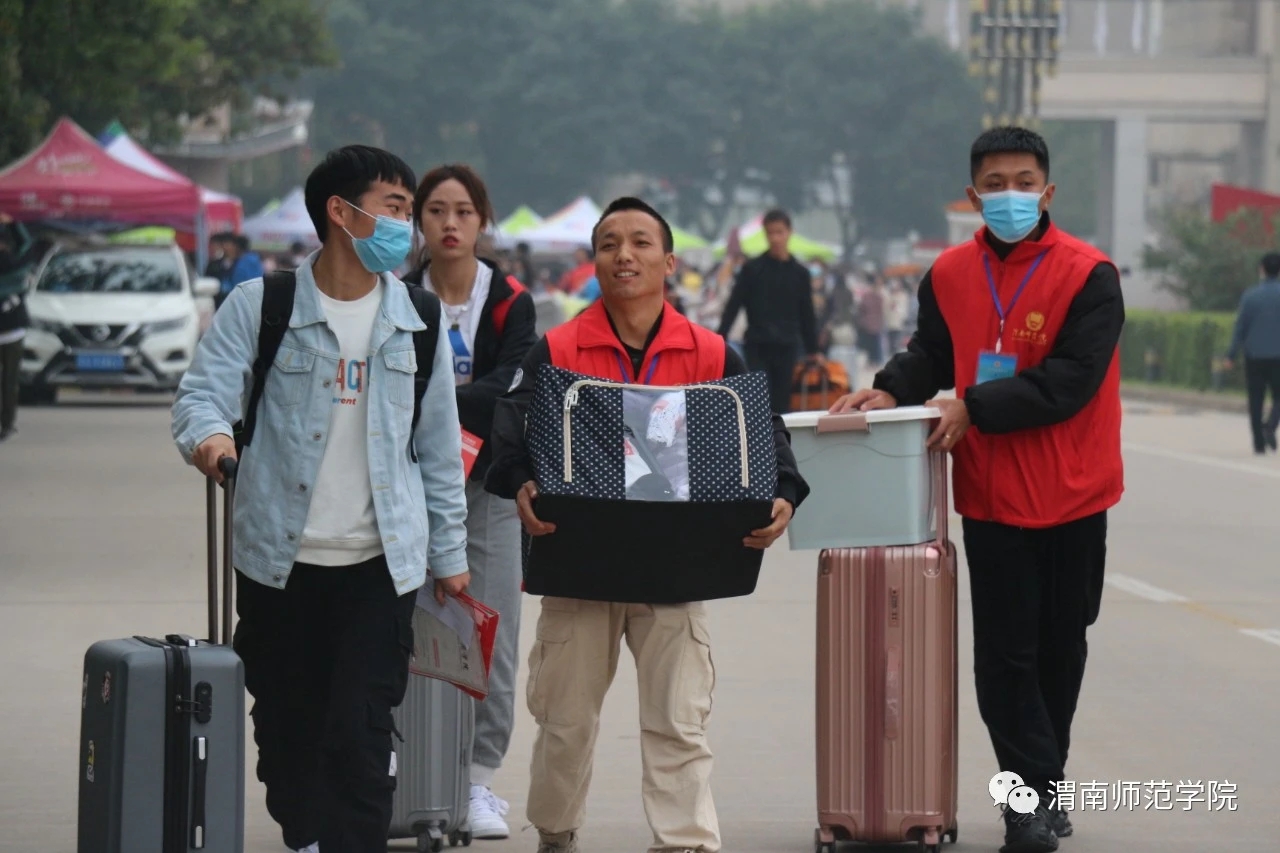 贴心服务,共筑美好。从渭南各车站到校门口,从报到点到新生宿舍,学校17支志愿者队伍身穿不同颜色的志愿者马甲,架起新生与校园之间的彩虹桥,帮助新生搬运行李,做好新生引导、咨询、入住、领取物资等服务,活跃在迎新的各个场所。教师党员自愿走进学生宿舍,帮助新生整理床铺,打扫卫生,叮嘱注意事项,用热情温暖深秋寒意中的新生。由我校校友和教职工等自愿组成的爱心服务车队,帮助新生护送行李到宿舍,为新生们提供暖心服务。
