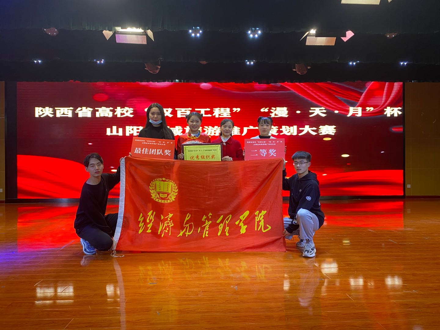 10月31日,陕西省高校“双百工程”“漫·天·月”杯山阳全域旅游推广策划大赛总决赛在西北政法大学长安校区举办。我校经济与管理学院营销专业“漫时光”团队(17级武田、金炜,18级雷松泽、周家兴,19级李青怡)荣获二等奖、最佳团队奖、优秀组织奖三个奖项;团队指导教师黄东梅被评为优秀指导教师;市场营销专业17级武田和19级李青怡被山阳县聘为“旅游宣传大使”。