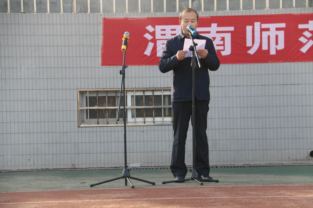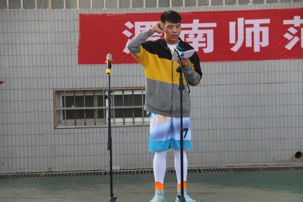 教务处处长孙宏恩致开幕词。他表示,这是一次促进学生德智体美劳全面发展的重要活动,也是检验我校学生精神风貌和身体素质的大好机会。希望通过本次联赛使同学们树立强身健体的意识,掌握基本运动技能,养成良好运动习惯,增强集体荣誉感,积极弘扬渭师人迎难而上、敢于亮剑、永不言败的精神,做到文明精神、强健体魄。