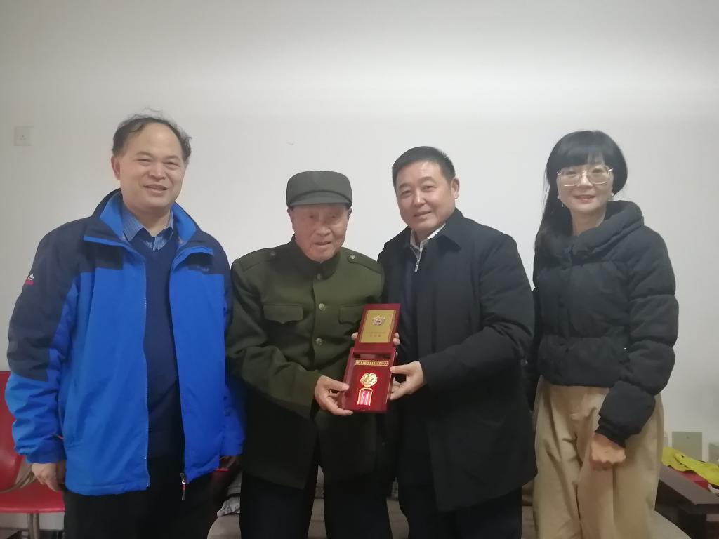 11月30日上午,党委书记卓宇一行走访慰问我校抗美援朝老战士傅自善,卓宇代表学校党委及全体教职工向抗美援朝老战士致以崇高的敬意,并为他颁发了“中国人民志愿军抗美援朝出国作战70周年”纪念章。