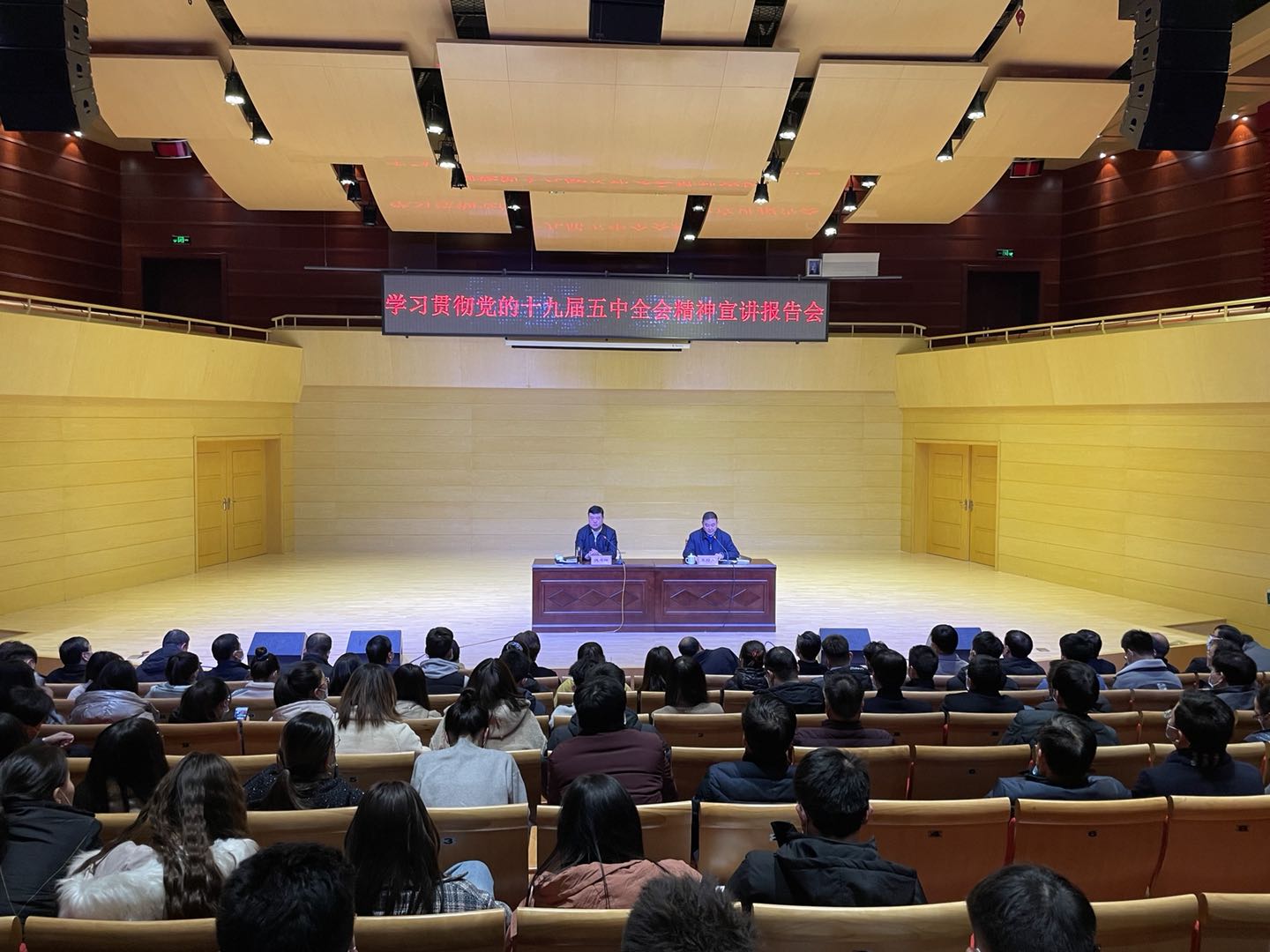 魏建锋以《开启全面建设社会主义现代化国家新征程的纲领性文件——深入学习贯彻党的十九届五中全会精神》为题,从“深刻认识党的十九届五中全会的重大意义、精神实质和丰富内涵”“深入学习贯彻党的十九届五中全会精神,奋力谱写渭南新时代追赶超越新篇章”“激扬青春梦 奋进新征程 奋力书写无愧于时代的青春华章”等三个方面对党的十九届五中全会精神进行了深入浅出、全面系统地宣讲解读。同时,魏建锋在报告中从“切实加强对思政课建设的领导、思政课教师一定要讲好思政课、学生一定要学好思政课”等三个方面给学校进一步加强和改进思政课教学提出了改革目标和发展方向。