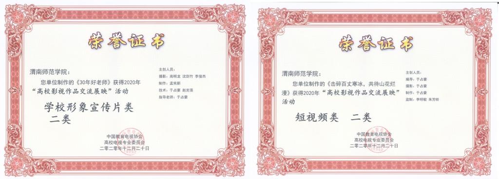 我校电视台参展的作品《击碎百丈寒冰 共待山花烂漫》《30年好老师》《一方水土“扶”一方人》《扶贫路上》立意新颖、制作精良,受到专家评委的一致好评,分获短视频类、学校形象宣传片类、纪录片类二等奖;《快乐课堂 暖心支教》《双语微课:习近平在纪念五四运动100周年大会上讲话精神解读》《渭南师范学院举办毕业生就业洽谈会185家就业单位进校觅良才》等作品分获专题类、教学类、新闻类三等奖。