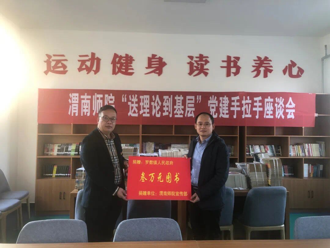 1月14日下午,我校党委委员、宣传部部长李明敏赴华阴市罗敷镇开展“送理论到基层”党建手拉手活动,并向罗敷镇捐赠价值3万元图书。