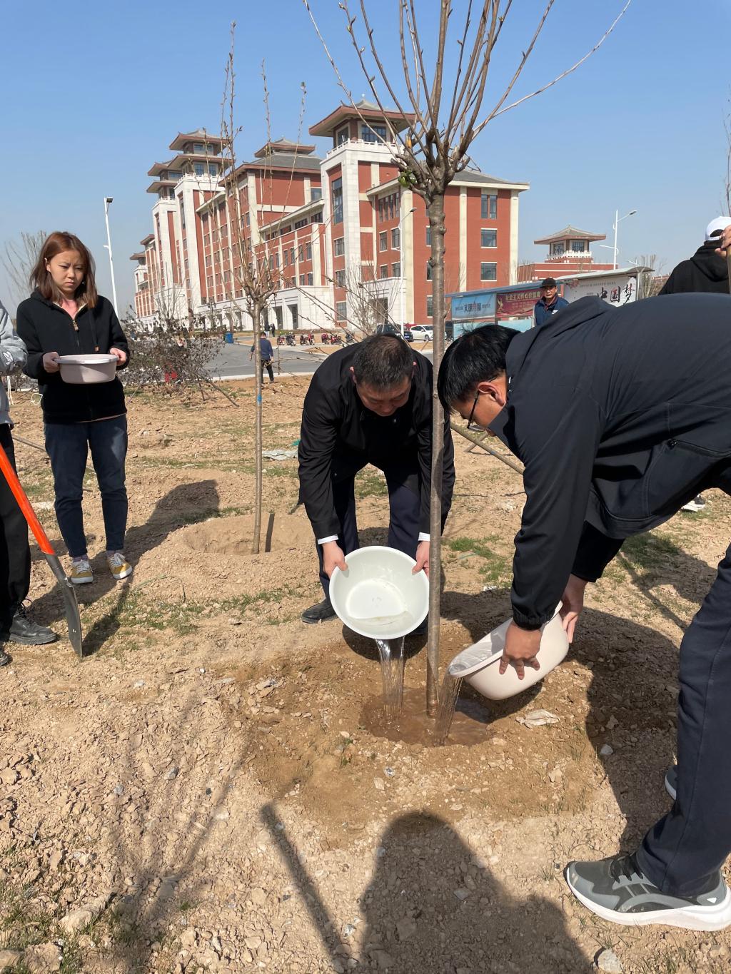 学校党委副书记任健,党委副书记、纪委书记肖耀刚,副校长卢爱刚、王菊霞、韩小卫、曹强,党委委员凌朝栋、李明敏参加植树活动。学校各职能处室负责同志,美术学院、传媒学院班子成员,师生代表及部分合作企业代表共计200余人参加植树活动。(通讯员 安幼薇)