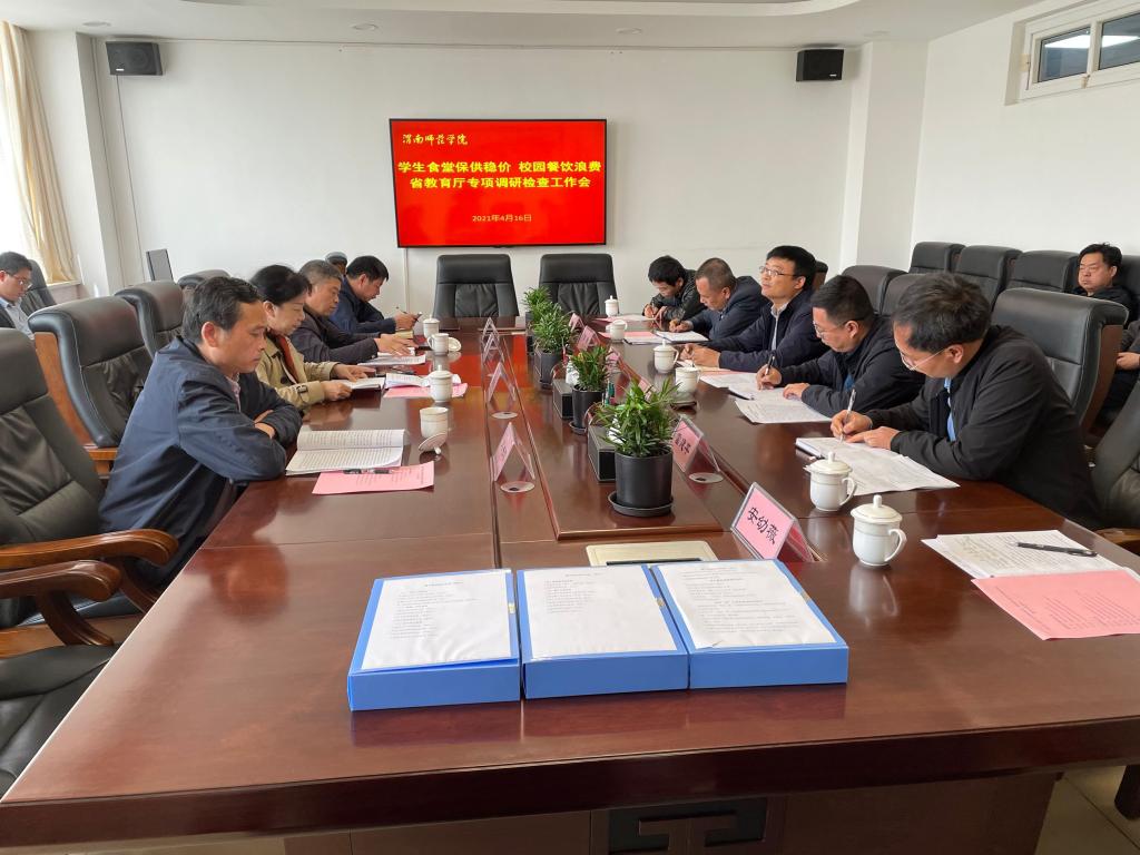 4月16日,陕西省教育厅高校学生食堂保供稳价、校园餐饮浪费专项调研检查组来我校开展专项调研检查。调研专家组由省教育厅装备中心主任赵梦,教育厅装备中心装备科科长赵龙颐,西安建筑科技大学后勤集团总经理助理刘书军,陕西科技大学后勤集团总经理助理马玉清组成。调研活动以座谈会、调阅资料、实地检查方式开展。
