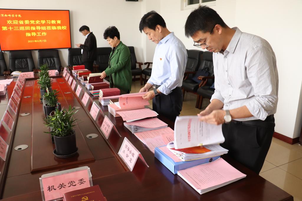 指导组一行查阅党史学习教育相关资料