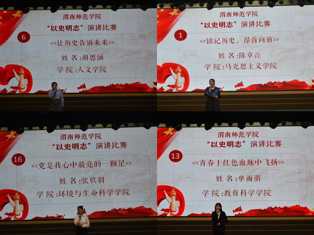 比赛中,选手们围绕“以史明志”这个关键词展开,以《让历史告诉未来》《青春于红色血脉中飞扬》《峥嵘百年史 砥砺中国行》等为题演讲,带大家回顾中国革命历史和奋斗历程,歌颂党的辉煌历史和丰功伟绩,讴歌老一辈革命家大公无私和甘于奉献,同时结合自身学习经历与生活感悟,抒发了他们对党和国家的深厚情感,展现了青年学子良好精神风貌,表明了继承优良传统、为新时代建功立业的信心和决心。
