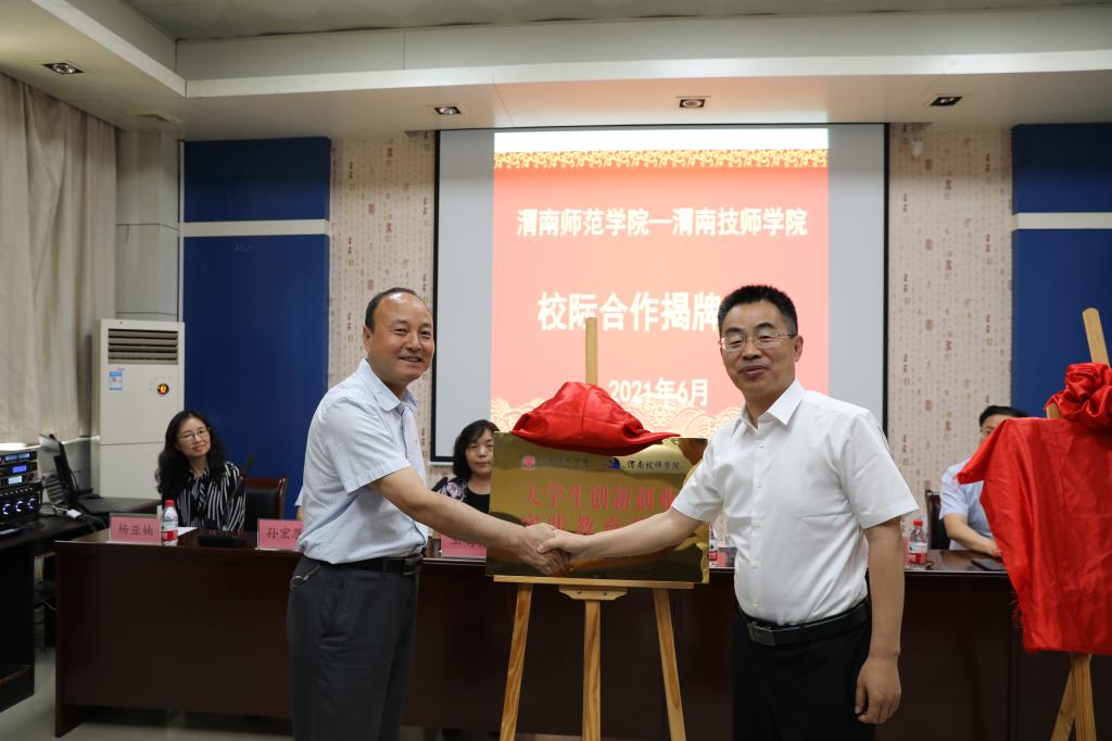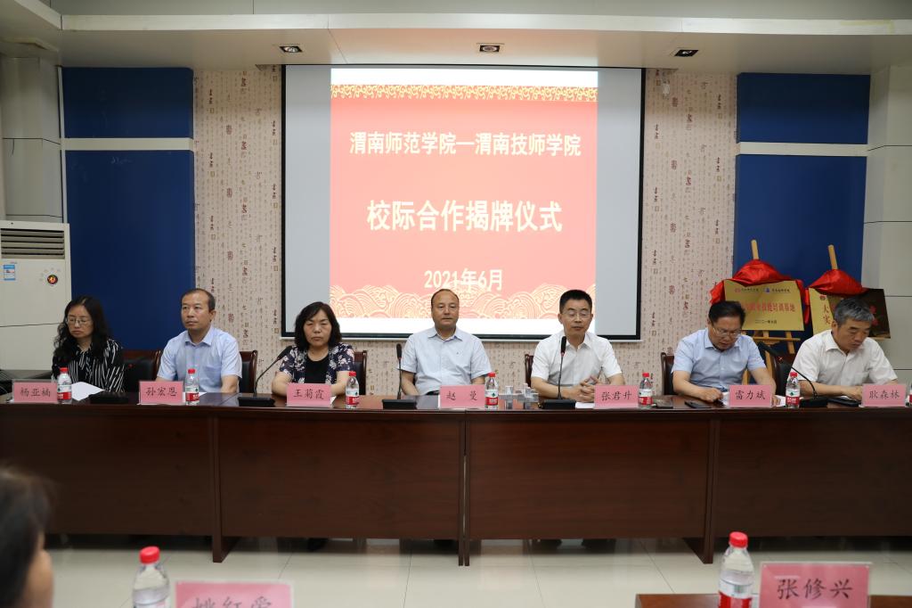 6月2日上午,“渭南师范学院-渭南技师学院大学生创新创业实践教育基地”和“渭南师范学院大学生职业技能培训基地”落成揭牌仪式在渭南技师学院举行。我校校长赵曼、副校长王菊霞,渭南技师学院院长张君升,渭南技师学院副院长雷力斌出席揭牌仪式。
