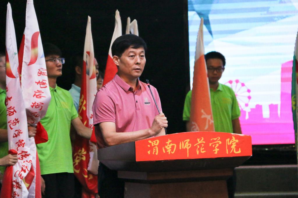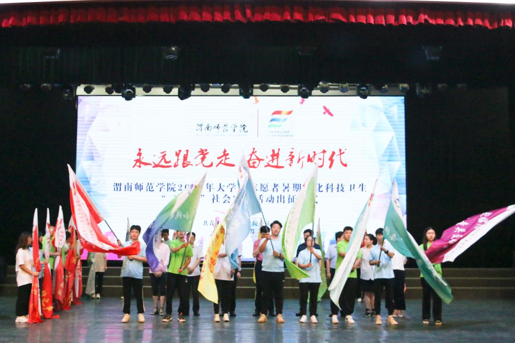 仪式上,团委书记姚明亮宣读《渭南师范学院2021年暑期文化科技卫生“三下乡”社会实践活动的通知》文件;学生工作部(处)部长陈景西宣读《渭南师范学院2021年暑期文化科技卫生“三下乡”社会实践活动立项通知》。环境与生命科学学院副院长、副教授吕海波博士代表社会实践带队教师发言,他希望,同学们要将暑期社会实践作为磨砺自身的试金石,在实践中完成健康个性塑造、体会劳动价值、构建职业生涯,在实践中展现我校大学生的良好精神风貌与技能水平。莫斯科艺术学院美术学H181班席瑞瑶同学代表暑期社会实践队志愿者发言,她表示,要在暑期社会实践中把握时机、积极锻炼,把“三下乡”实践活动在老师的指导与同学的协作下完成好,为自己的大学生活增添光彩,用实际行动践行永远跟党走、奋进新时代的时代主题。随后,参会领导为“三下乡”社会实践队伍授旗,激励同学们在广大基层实践中积极建功立业、实现青春理想。