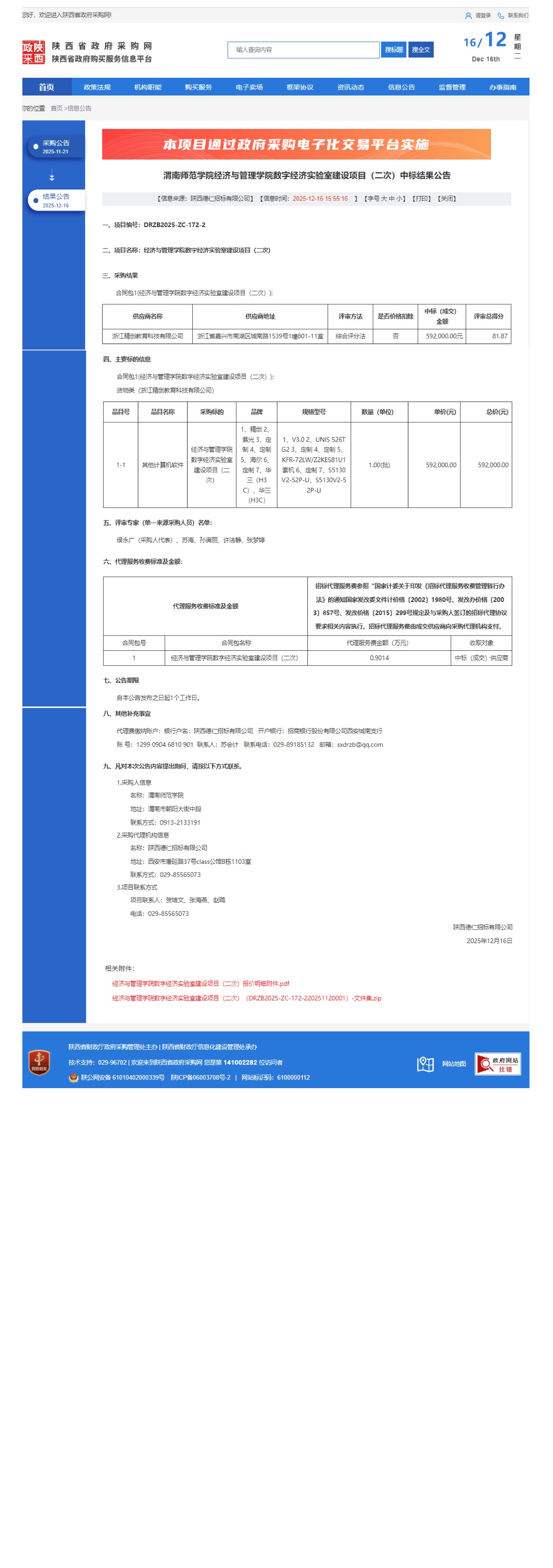 渭南师范学院经济与管理学院数字经济实验室建设项目(二次)中标结果公告