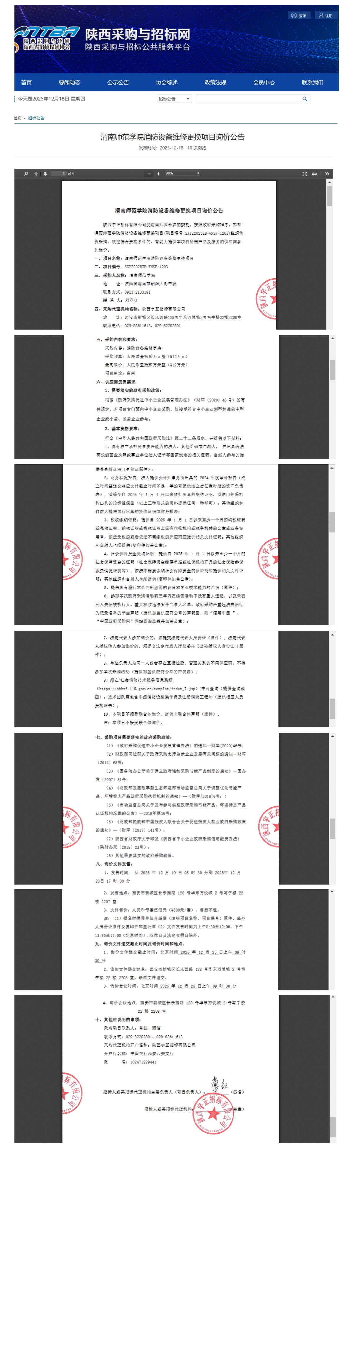 渭南师范学院消防设备维修更换项目询价公告