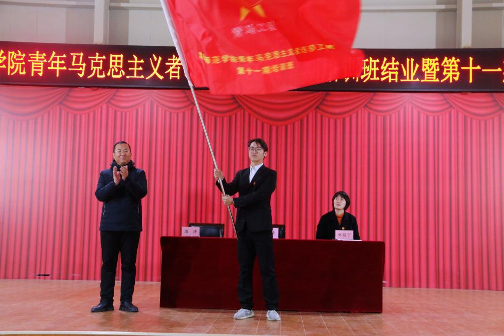 校团委书记赵琦为“青马工程”第十一期大学生骨干培训班学员授旗、并为第十期优秀学员颁发荣誉证书。
