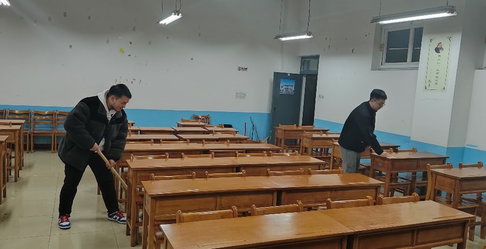 活动前,学院党总支副书记、第三党支部统战委员马雷蕾作动员讲话。她谈到,劳动文化具有隐形育人的重要作用,要充分发挥劳动模范的价值引领,帮助大家在潜移默化中深刻体会劳动光荣、伟大、崇高、美丽的丰富内涵。随后,全体师生党员、发展对象、积极分子整装待发,以党小组为单位分片包干,对学院办公区域、教室等重点区域进行全方位清理打扫,他们彼此配合、分工明确、热情高涨、干劲十足,做到“清除积灰、不留死角”。经过一个多小时的彻底清扫,教室干净整洁、清新怡人,为学生创造良好学习氛围。