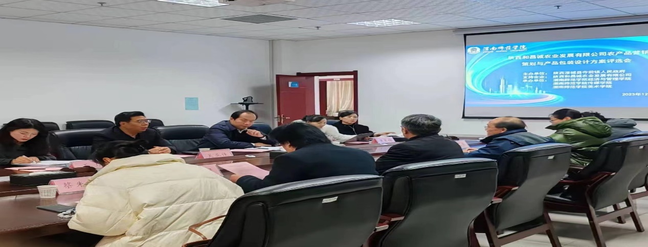12月15日下午,由渭南市澄城县寺前镇人民政府主办,渭南师范学院经济与管理学院、传媒学院和美术学院联合承办的澄城县陕西和昌诚农业发展有限公司农产品营销策划方案和产品包装设计方案评选活动,在渭南师范学院富平校区行政楼2楼会议室顺利举行。本次项目评选活动邀请了澄城县寺前镇镇长杨荣、陕西和昌诚农业发展有限公司董事长吴亚锋和总经理王艳芳,传媒学院副院长贺宏福、副院长侯君奕,美术学院副教授杨明彦、赵斌、蔡朱红,经济与管理学院副教授黄东梅、王瑶博士等专家老师担任评委。评选活动由经济与管理学院院长李富荣主持。