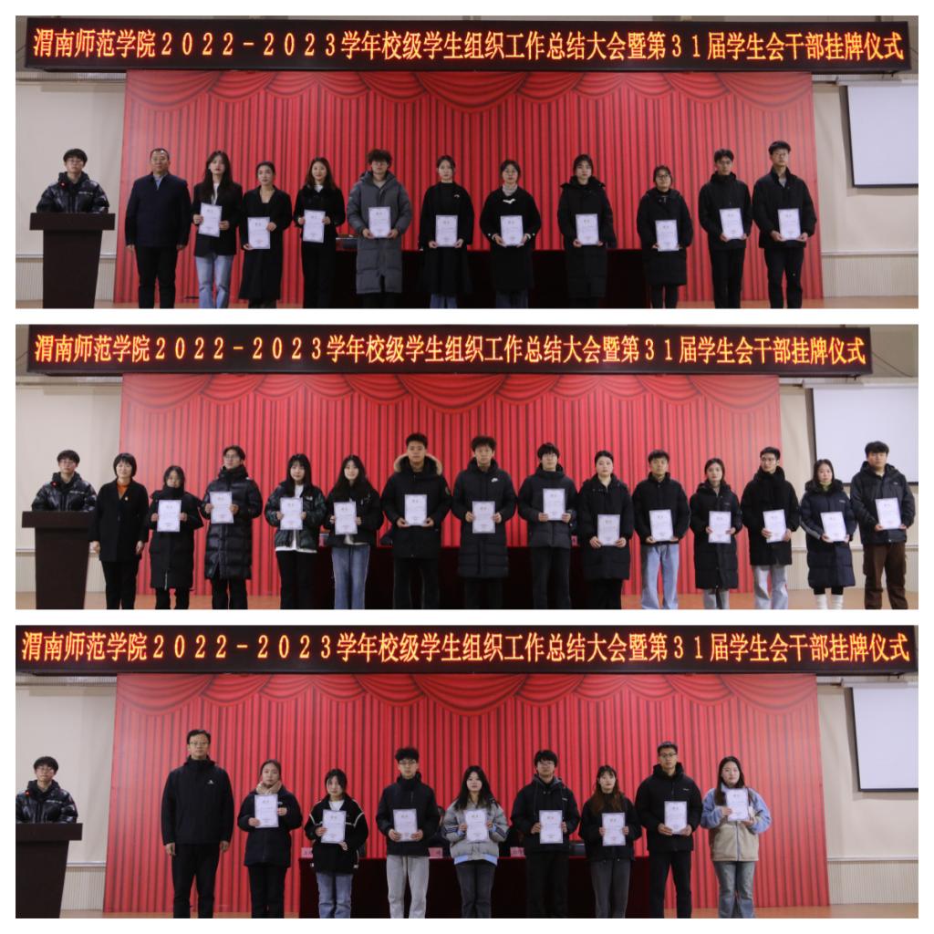 校团委班子为第30届学生会负责人以及各附属组织成员颁发聘书,并为第31届学生会负责人以及各附属组织成员进行挂牌。