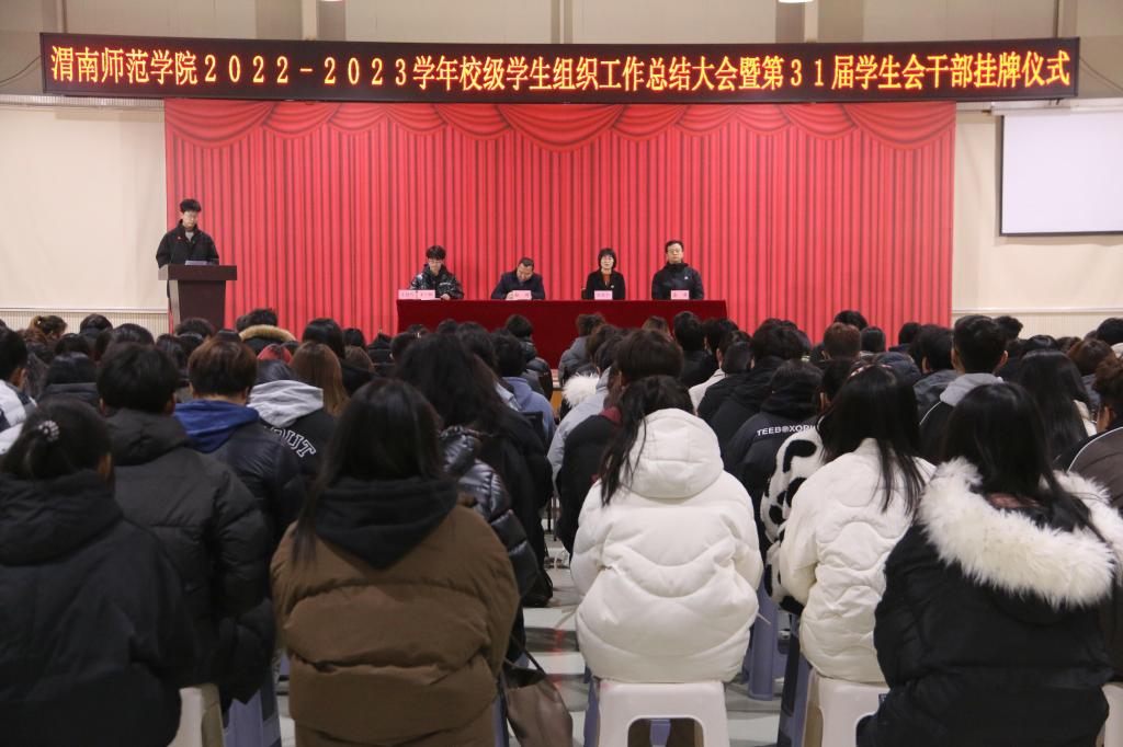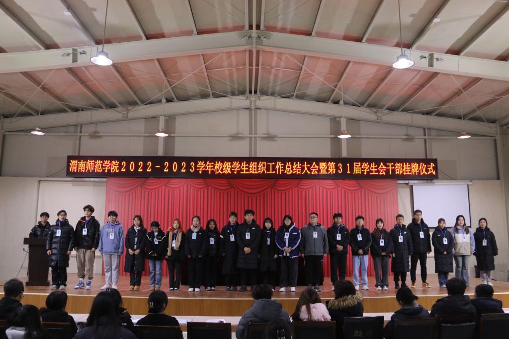 为深入学习贯彻党的二十大精神、落实团的十九大工作部署,充分发挥学生会以及附属组织的组织能力,服务能力,领导能力。12月18日晚,我校在渭师青年之家大学生活动中心举办校级学生组织工作总结大会暨第31届学生会干部挂牌仪式。校团委书记赵琦,校团委副书记刘娟宁、潘涛出席会议。