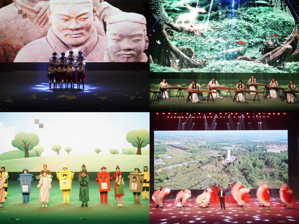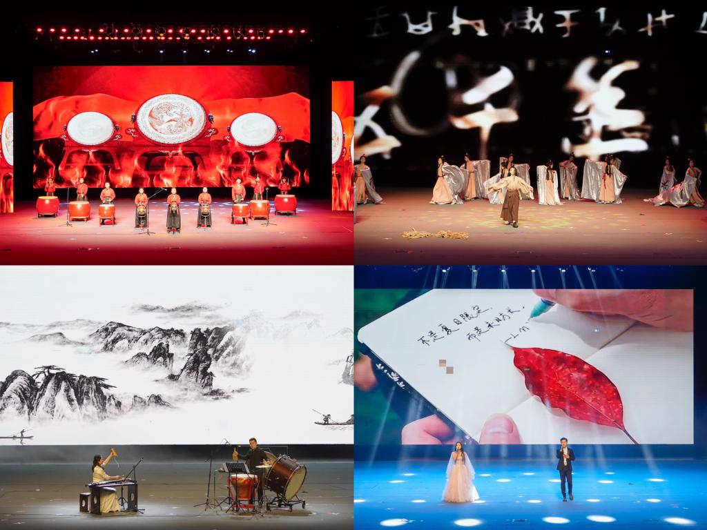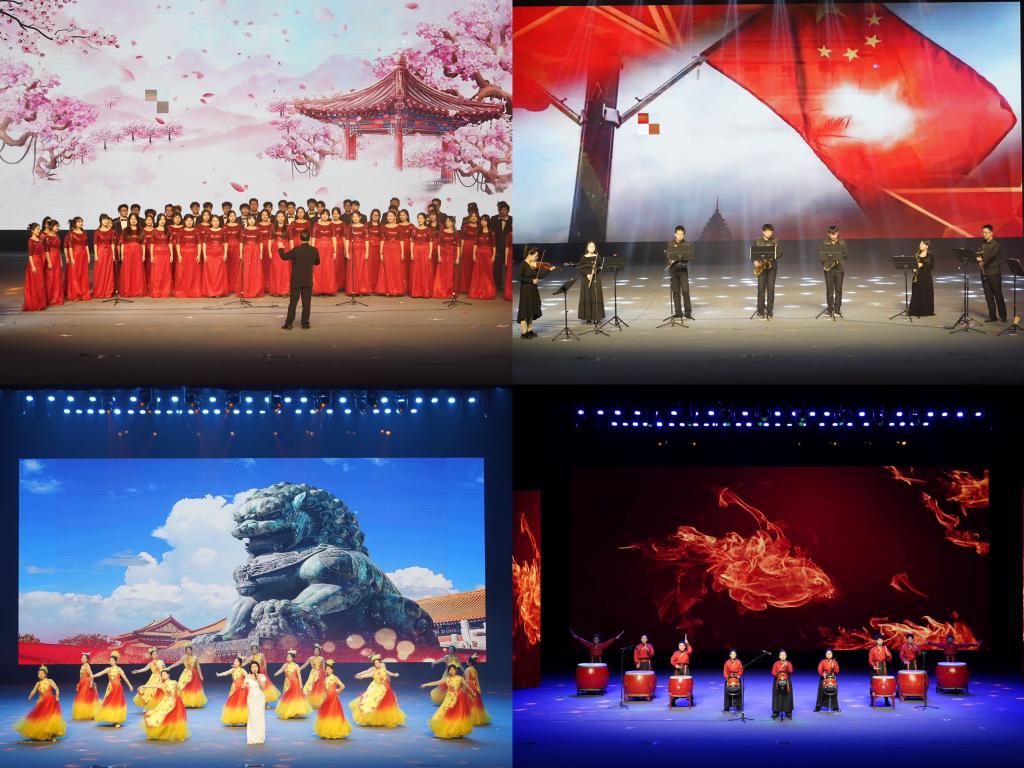 晚会在《鼓动中国》铿锵有力的鼓声中拉开序幕,气势磅礴的鼓点彰显了团结协作、拼搏奋进、自强不息的民族精神。舞蹈《仓颉造字》再现了中华民族文字出现的过程,见证了中华民族文化的进步。古琴与打击乐合奏《离骚》抒发了伟大爱国诗人屈原在政治挫折和流亡困顿中的深情与忧思。舞蹈《瞧:咱老陕人》演绎了陕西人豪爽、朴实、憨楞、勤劳、恋家的性格特征。歌曲《向信仰敬礼》以雄浑激越、青春激昂、大气磅礴的旋律歌颂了渭华起义中革命先辈浴血奋战、不怕牺牲的革命精神。《我爱你,中国》《在希望的田野上》等歌曲,唱响了中国阔步走向富强,走向复兴的新征程。朗诵《写渭南》展现了渭南儿女对这片故土深沉的热爱。晚会上师生们相继表演了歌曲《追梦青春》《新竹词》、古筝《蝴蝶泉边》、舞台剧《垃圾分类》、舞蹈《乌森格日》、合唱《人面桃花相映红》、器乐重奏《唱支山歌给党听》《我和我的祖国》《印记》等节目,为现场观众们带来了精彩纷呈的“文化大餐”。