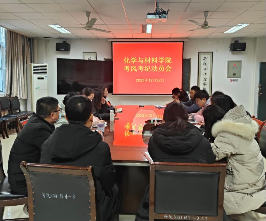 为进一步加强学风建设,严肃考风考纪,化学与材料学院于12月22日至12月29日,对全体学生开展了期末考试考风考纪动员。院长刘展晴、党总支副书记任小婷、副院长朱科、副院长杨珊、全体辅导员和新生班主任参加了本次会议,并安排了入班主题教育班会活动。