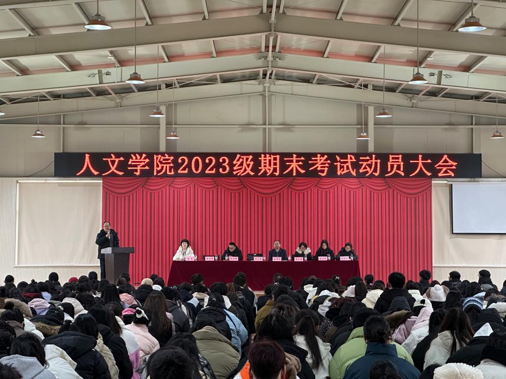 12月29日下午,人文学院在校团委青年之家召开2023级期末考试动员大会。党总支书记李三岗,院长赵前明,副院长雷炳锋,23级辅导员及全体2023级学生参加此次活动,党总支副书记、副院长张晶主持活动。