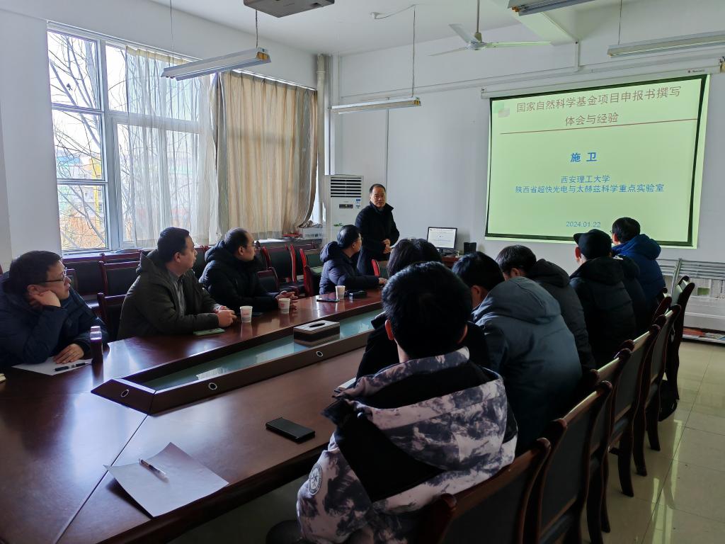 1月22日,物理与电气工程学院在2418开展国家自然科学基金项目申报交流会。科研处处长林关成,以及物理与电气工程学院20余名教师参加了本次交流会。报告会由张修兴主持。