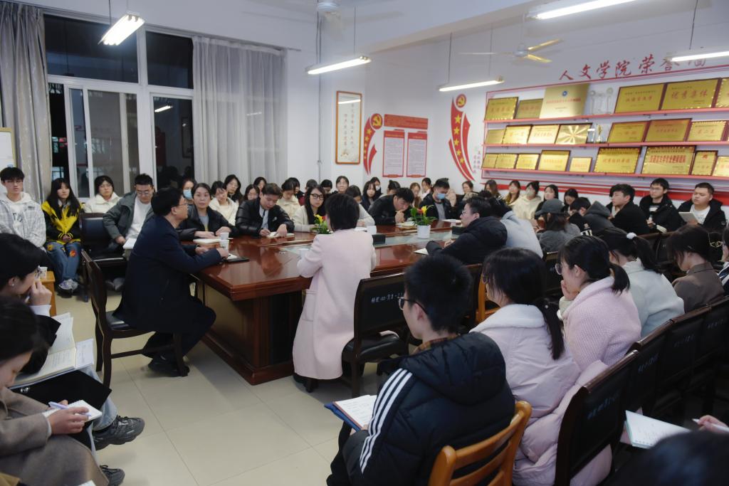 3月6日晚,人文学院在博识楼1318会议室举行本学期第1期(总第30期)“与析斋”答疑活动,特邀我校党委委员、副校长常青林老师,以“如何把公文写成美文”为题与同学们面对面交流畅谈。该院党总支副书记、副院长张晶主持座谈会,该院辅导员、学生及兄弟学院教师50余人参加了本次面对面答疑解惑。