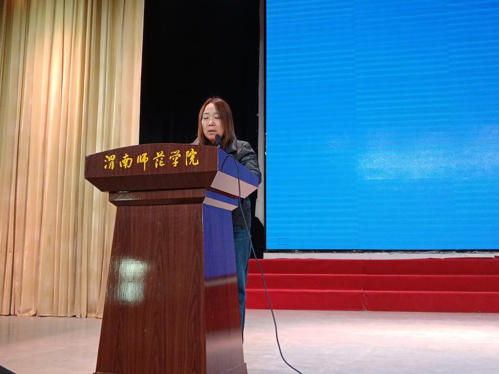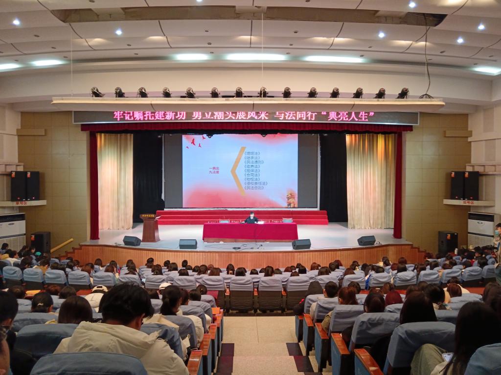 3月7日,教育科学学院、渭南市妇女儿童发展研究中心与共青团渭南师范学院委员会特邀渭南市中级人民法院妇联会维权执委、民二庭法官助理张梅在陶然楼演艺厅做题为《与法同行 “典”亮人生》普法专题讲座,渭南市中级人民法院政治部综合处处长刘莉、妇联家庭权益部部长宜珂、校团委副书记潘涛、党总支副书记马雷蕾、团总支书记谭宗英参加此次报告,报告由院长李西彩主持。