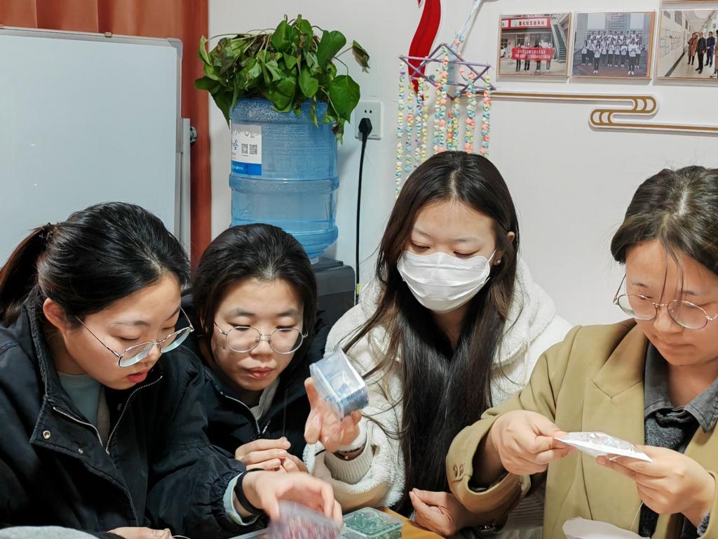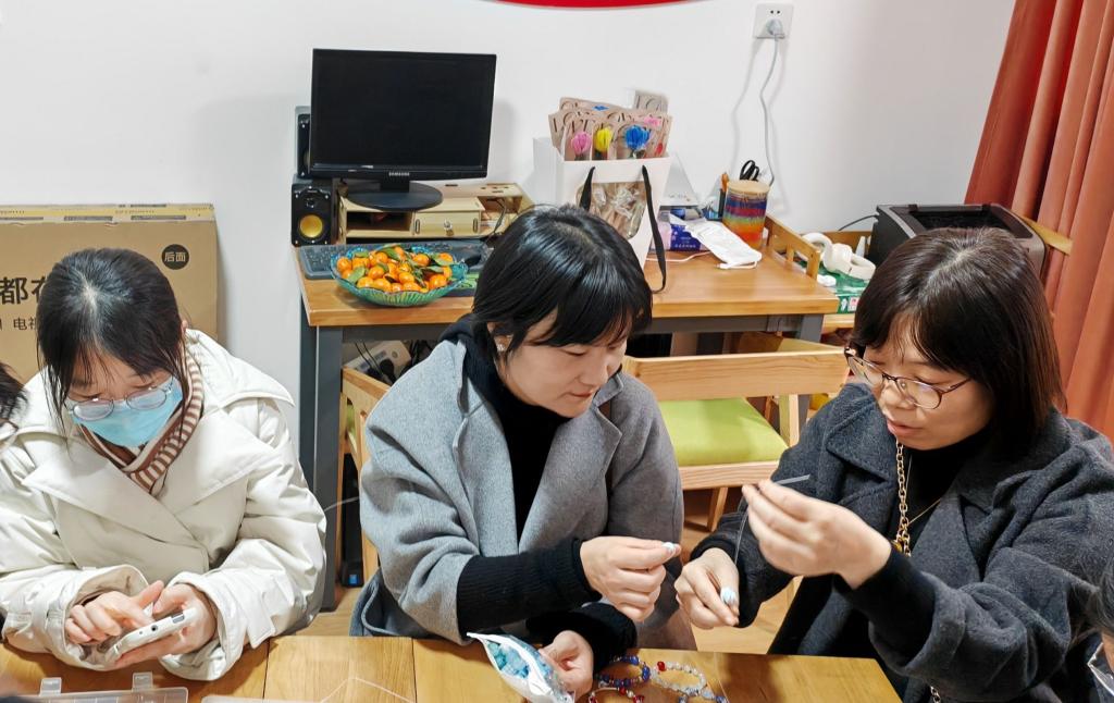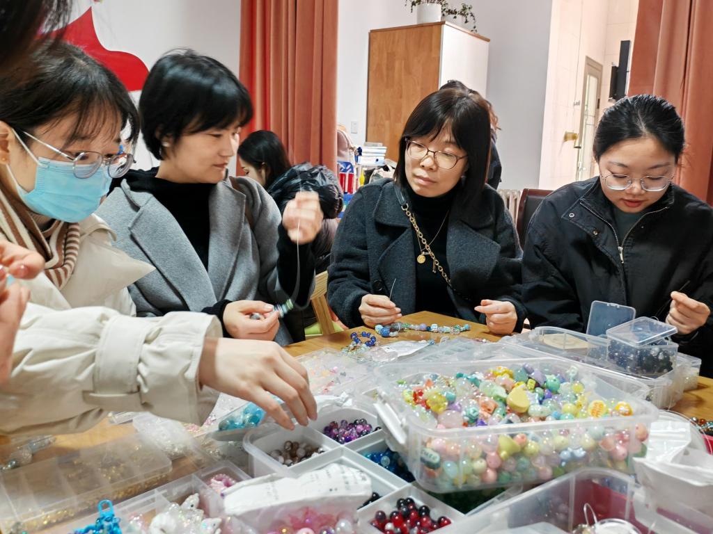 在第114个国际劳动妇女节来临之际,化学与材料学院于3月7日下午4点在“清风化语”思政育人工作室组织开展手工DIY活动,由化本221班徐姝云带领学院教职工和部分学生共同体验串珠。旨在丰富学院文化生活在结合劳动教育的同时展现师生融合的温暖氛围。
