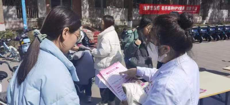 为庆祝“三·八”妇女节和我国第六个“国际HPV知晓日”,加快推进《“健康中国2030”规划纲要》,的到来,落实《加速消除宫颈癌全球战略》,进一步提升师生对宫颈癌的认知和防范意识,附属医院于3月8日中午联合临渭区疾控中心疫苗科分别在学校第一餐厅和第二餐厅门口开展了人乳头瘤病毒(HPV)疫苗(又称宫颈癌疫苗)健康教育宣传活动。临渭区疾控疫苗科科长党晓娟老师现场为前来咨询的同学们详细讲解了关于HPV的由来、主要传播途径、易感人群以及流行病学和研究现状,同时向同学们分析了现阶段HPV疫苗的类型与接种情况,呼吁同学要关注、了解HPV及其危害性,要加强自身防护踊跃参与接种HPV疫苗,早接种,早预防,减少或消除HPV病毒引起的相关疾病。