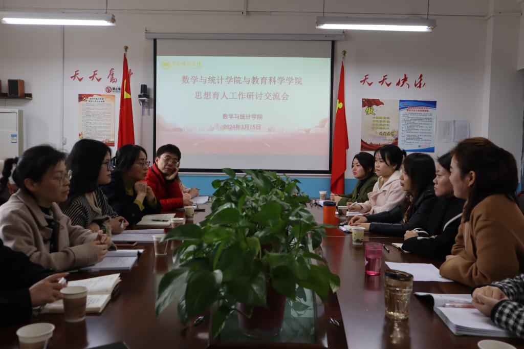 3月15日下午,数学与统计学院开展“主题班会”公开课,为学生上了一堂扎实的思政课;随后与教育科学学院学工队伍进行思想政治教育工作交流研讨,数学与统计学院党总支副书记张菊梅,教育科学学院党总支副书记马雷蕾,两个学院全体辅导员及学生代表参加交流会。