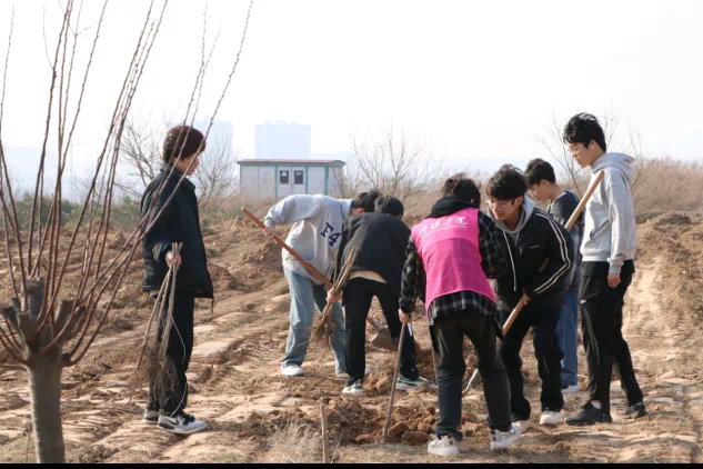 植树现场同学们挥洒青春的汗水,在实践中感悟自然,学习雷锋精神。在简短的启动仪式后,老师们首先示范了正确的植树方法,然后学生们便分组开始行动起来。植树现场中同学们积极发扬不怕苦、不怕脏、不怕累的精神,有的搬运树苗、有的铲土挖坑、有的提苗扶正、有的填土平整……大家分工明确、相互配合,栽种环节井然有序。
