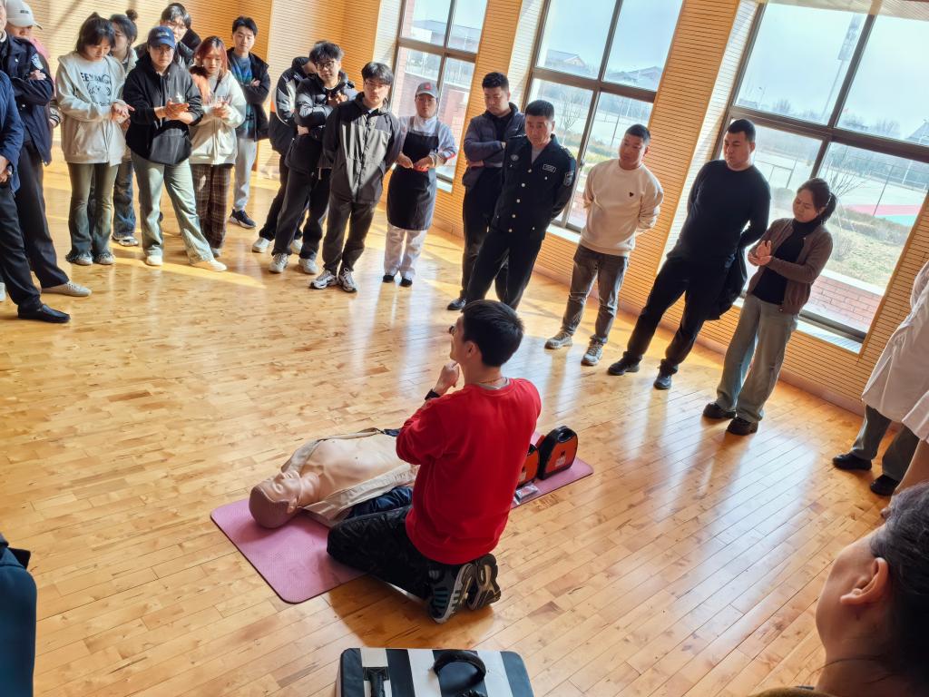 此次活动,附属医院特联合体育学院、校团委分别对两校区所有体育老师、各二级学院大学生志愿者、辅导员老师代表以及保卫处安保人员、后勤服务中心楼管等工作人员进行了培训。培训中,急救团队老师重点介绍并现场操作了AED设备,对参加活动的师生手把手进行了心肺复苏、AED设备的使用培训,让师生掌握心肺复苏要领、AED使用知识,进一步增强师生安全防范意识和自救互救能力,确保在紧急关头师生能够“敢用”“会用”急救设备。最后,急救团队的老师们带领师生进行了心肺复苏的现场演练,并对演练情况进行了现场指导和点评。