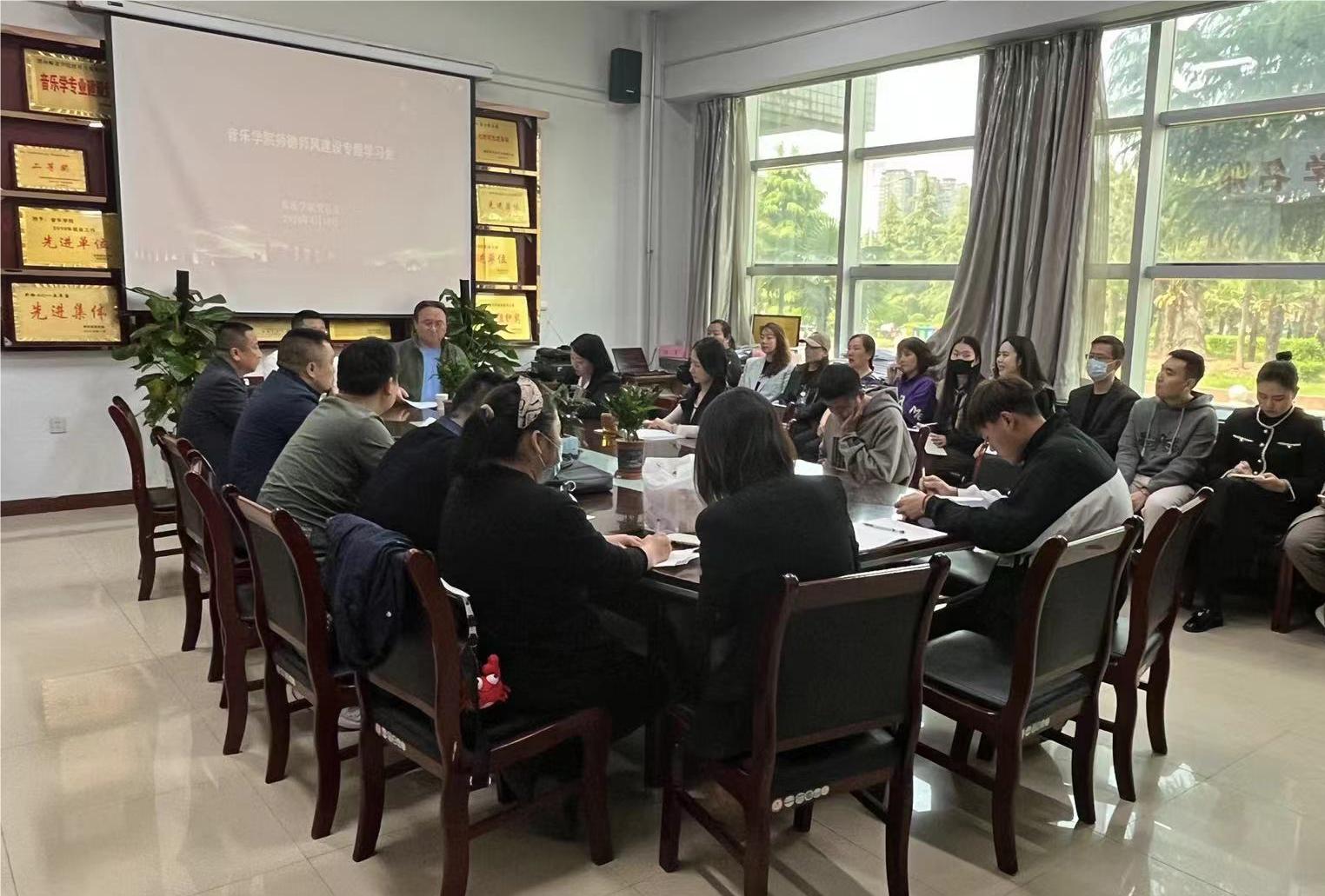4月10日下午,音乐学院组织全体教师召开师德师风专题学习会,会议由音乐学院党总支书记白锐主持。